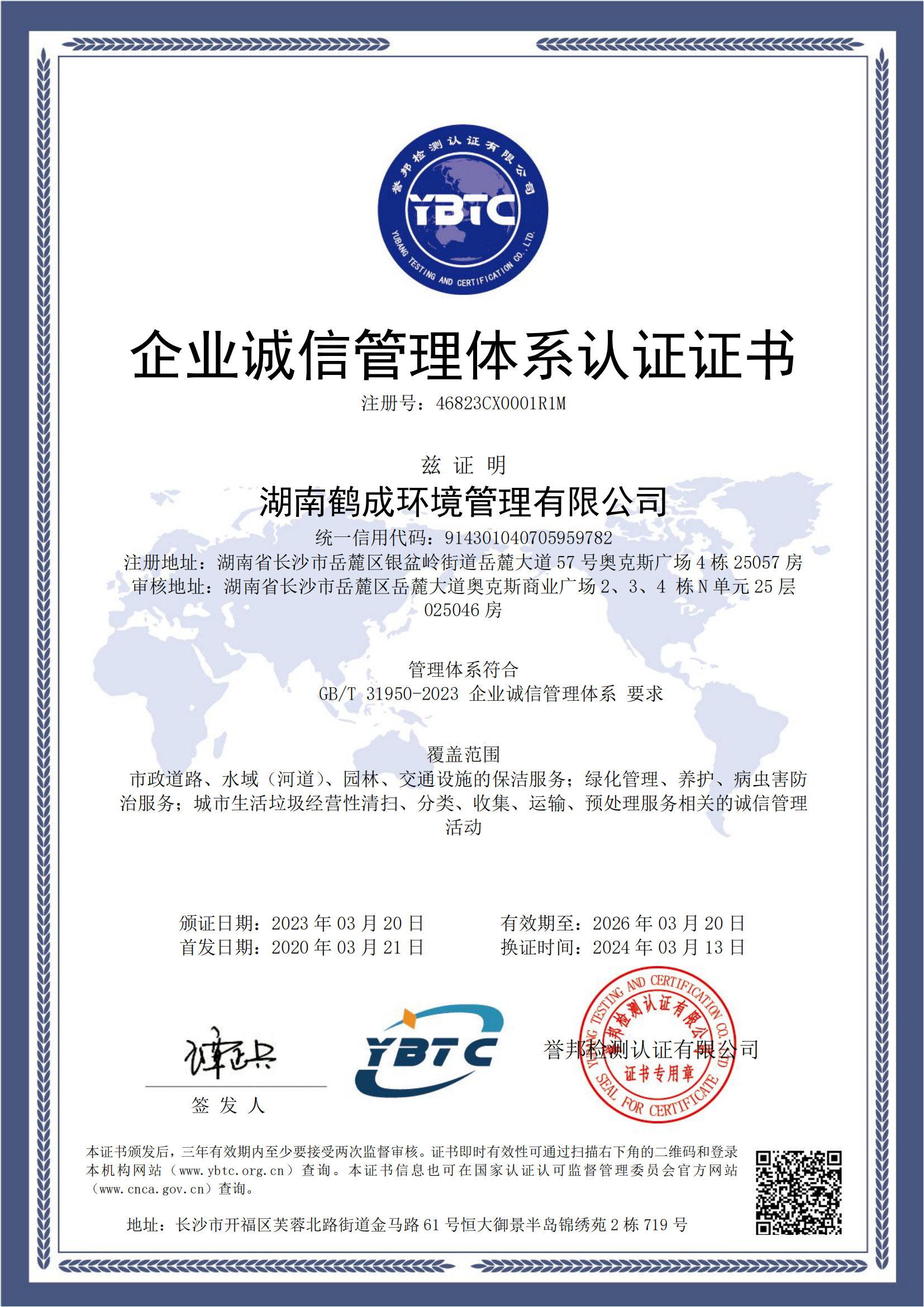 湖南鹤成环境理有限公司在市(jng)政环卫经营中不断ȝ、不断完善,提炼出富有企业特色的理模式…?/span>